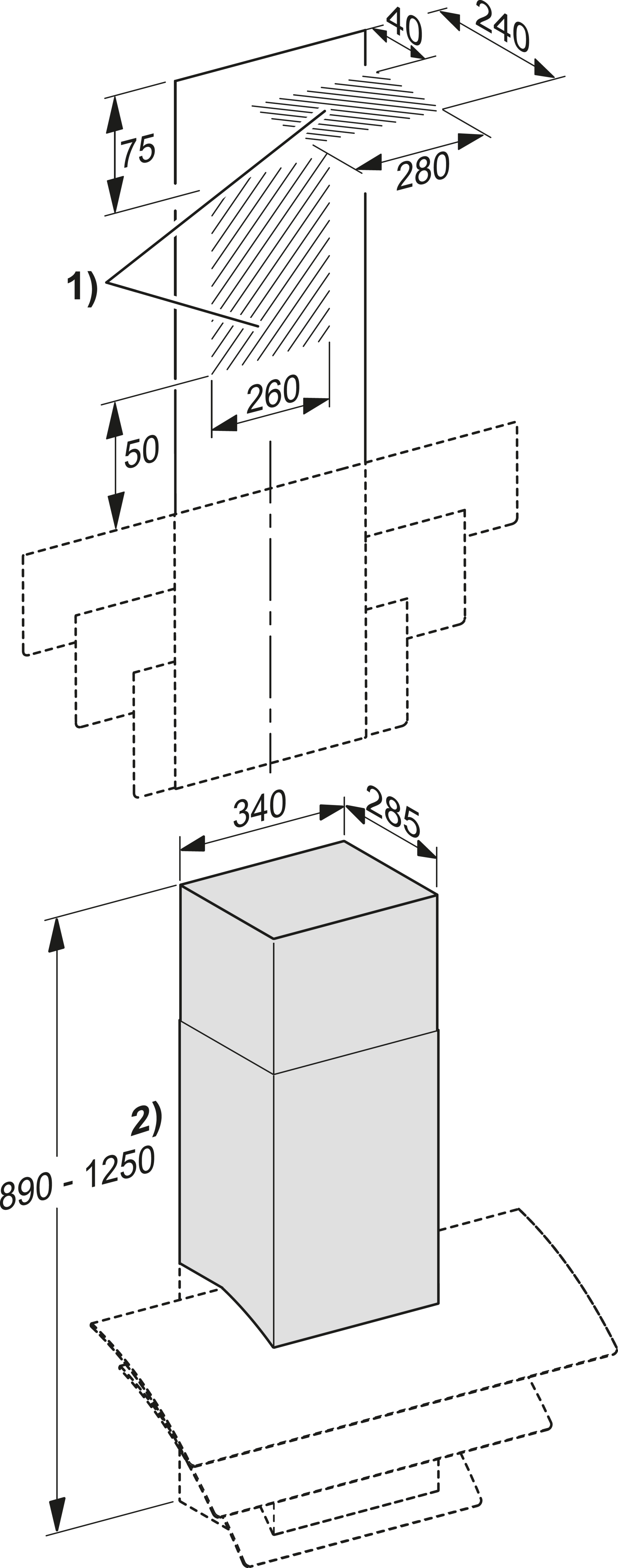 Глубина дымохода 285 мм