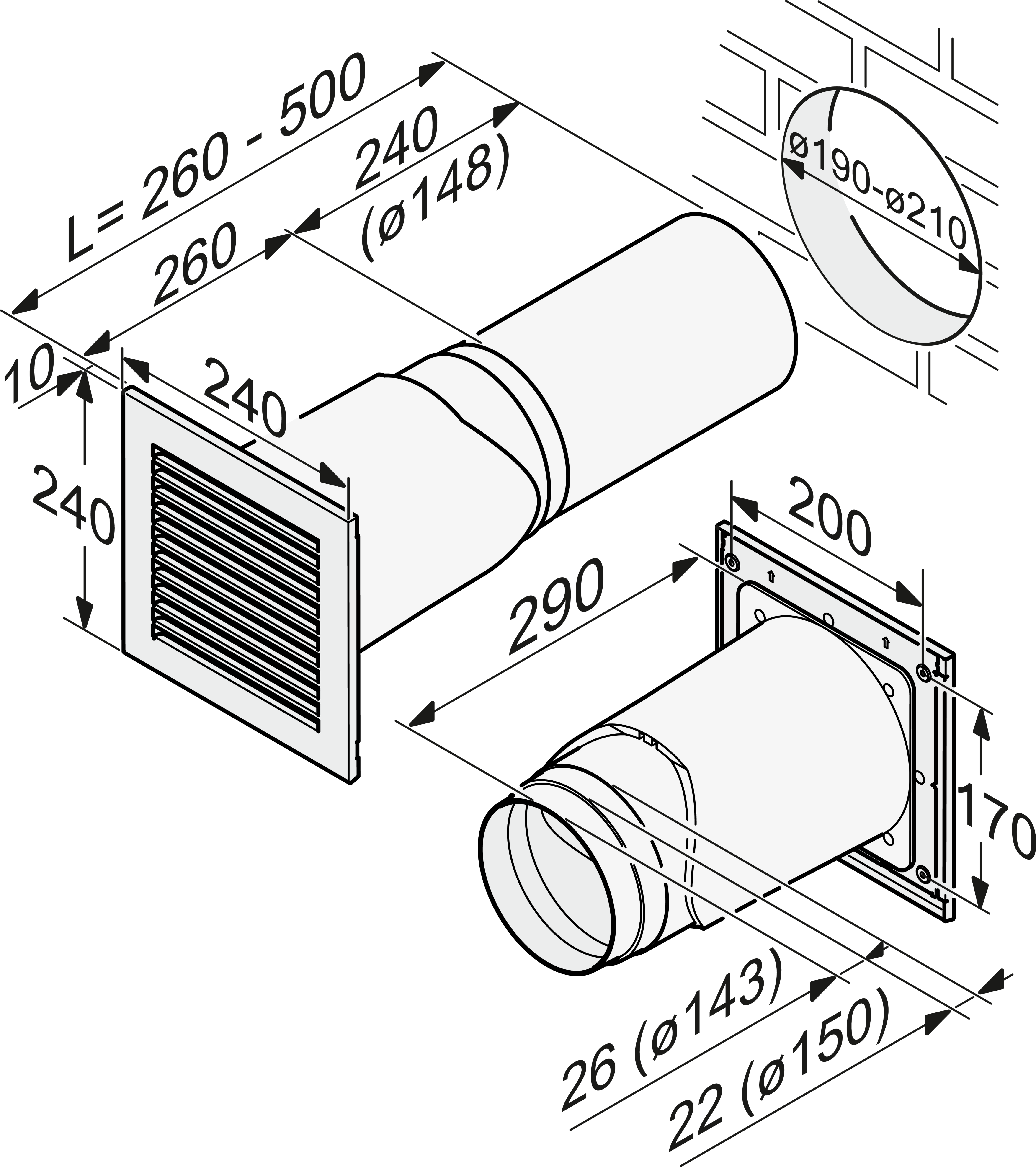 Настенный короб Ø 150 мм для вентиляции вытяжек