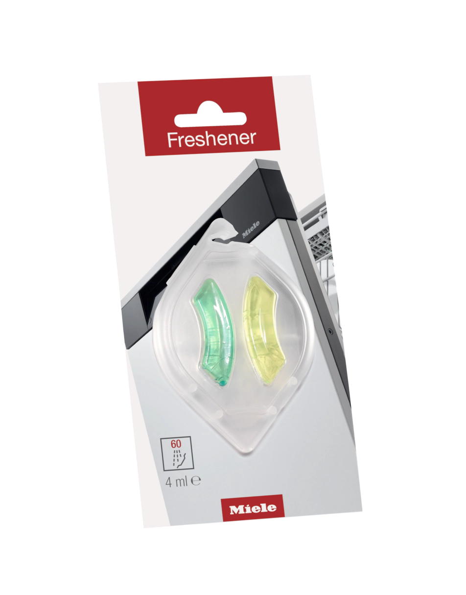 В посудомоечной машине возможно образование неприятных запахов, особенно, если она не используется каждый день. Комбинация биологически активных веществ - лимона и зеленого чая - в составе ароматизатора Miele нейтрализует эти запахи и надолго сохраняет свежий аромат в Вашей посудомоечной машине