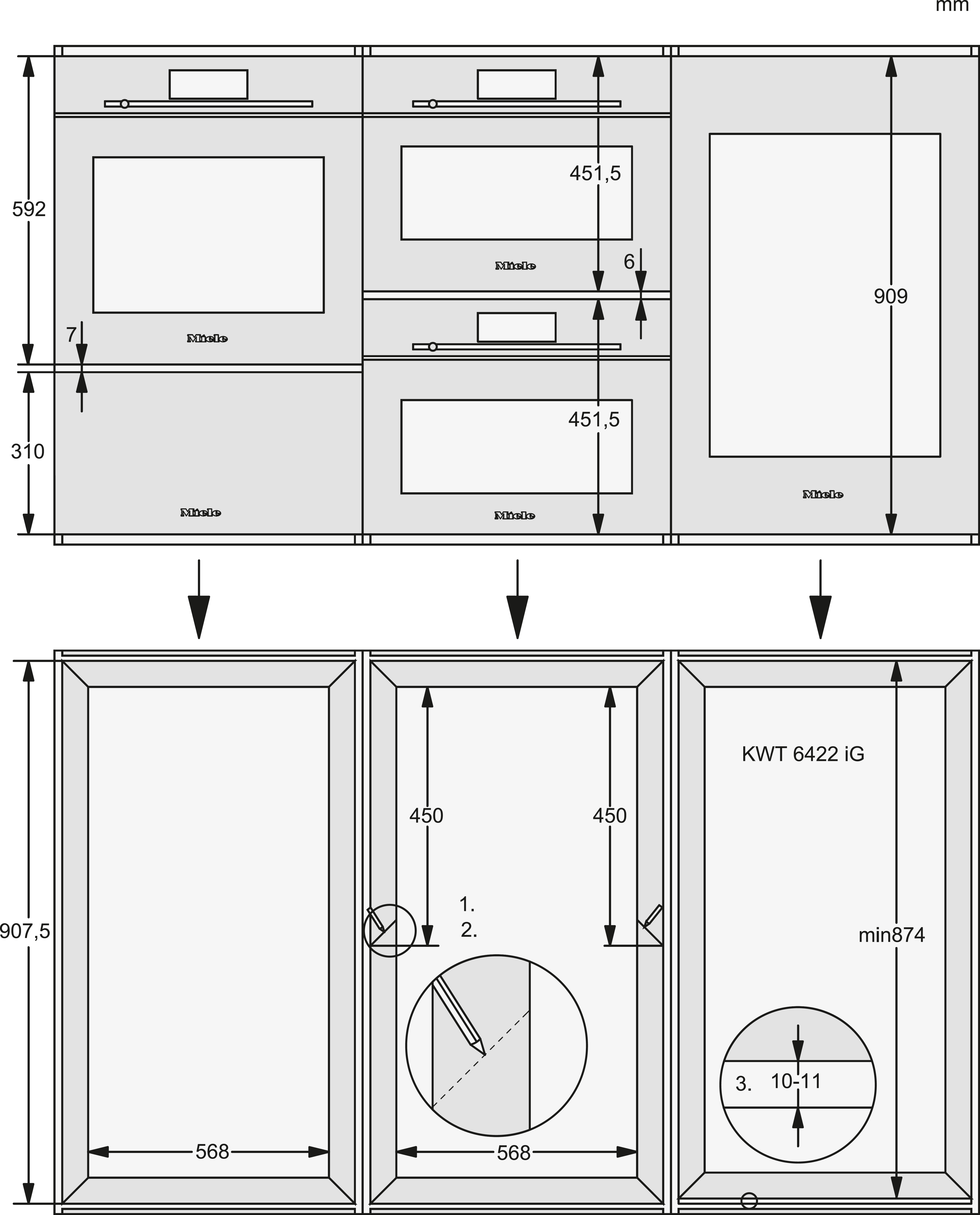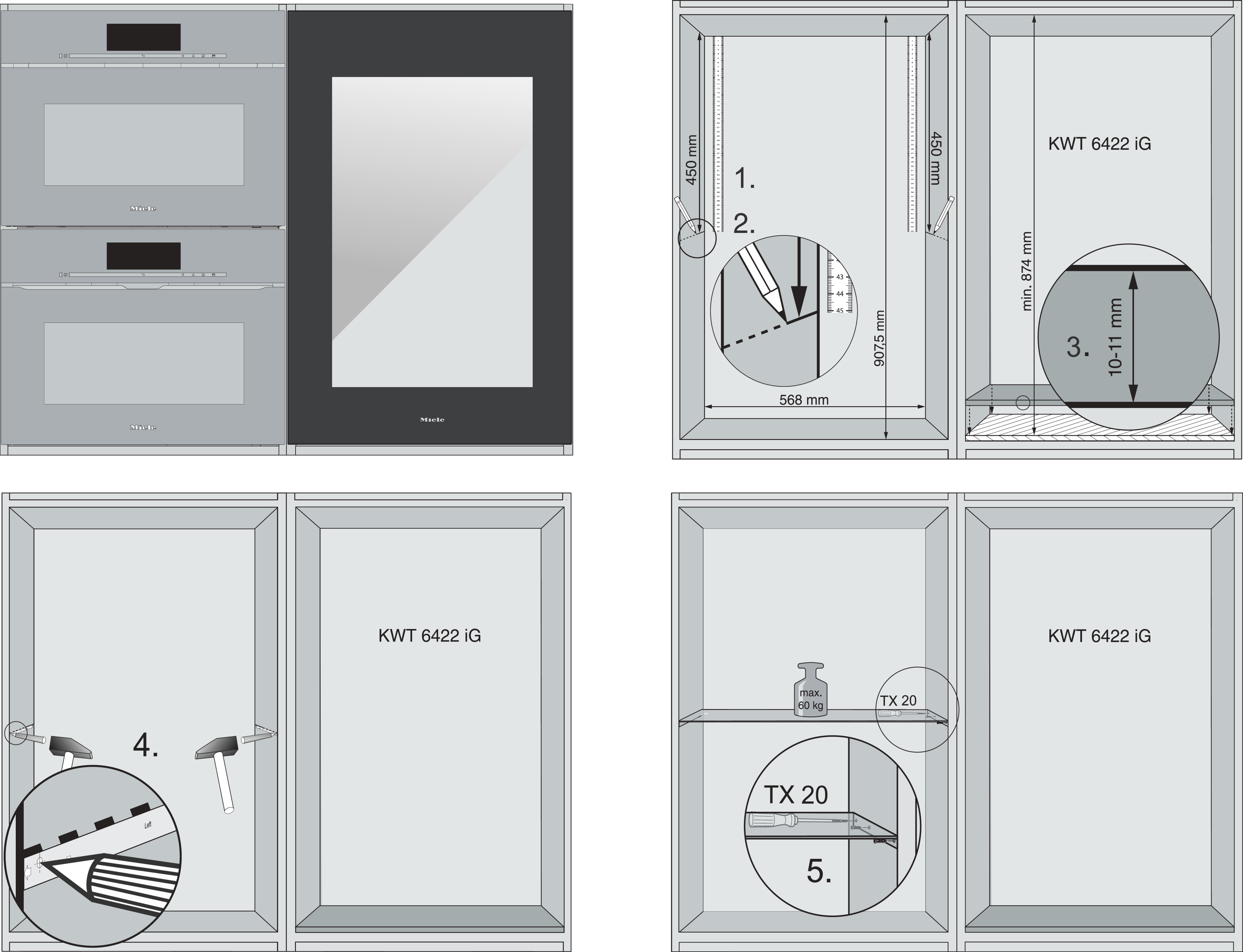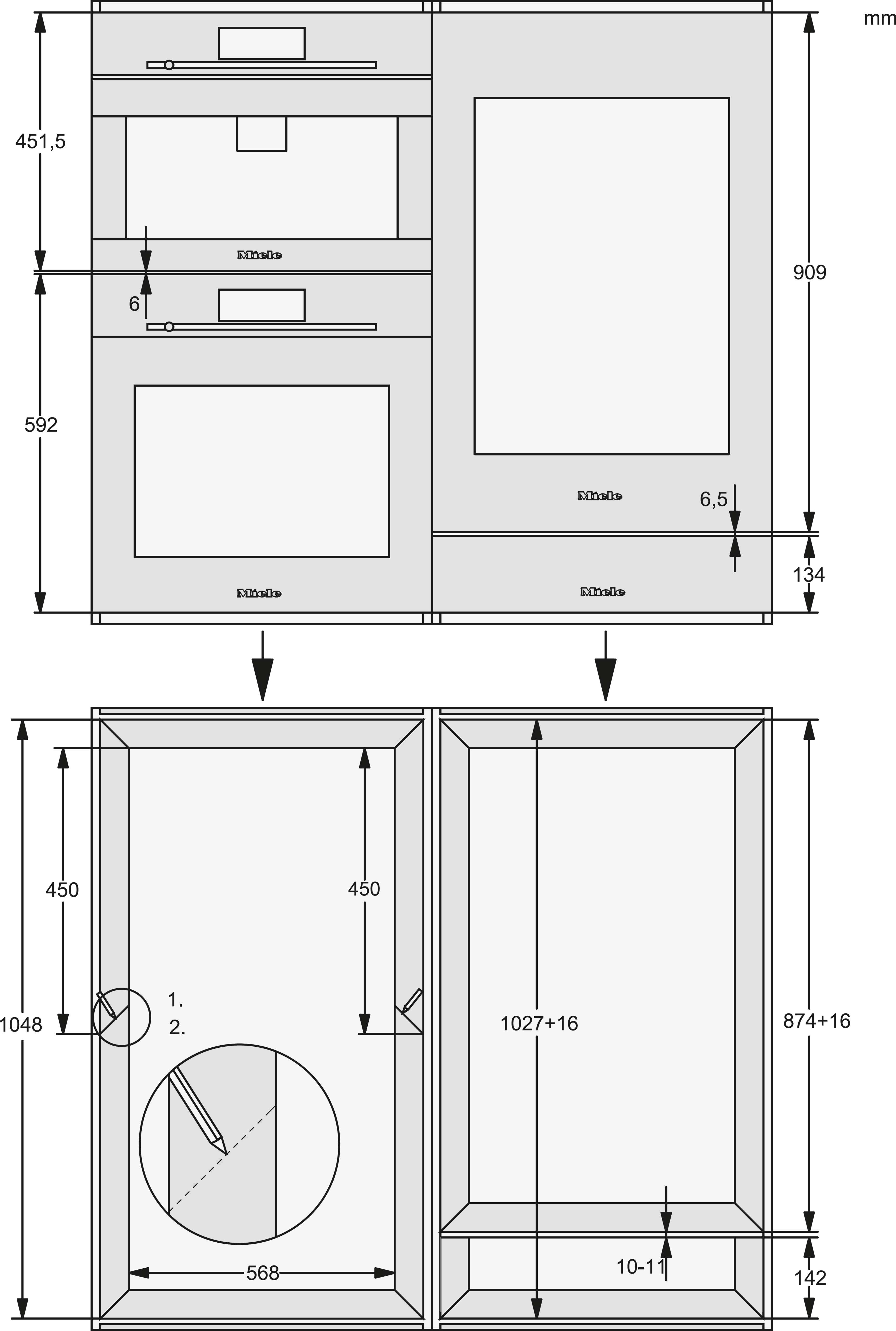 Возможность установки side-by-side с колонной из 2-х встраиваемых приборов для приготовления пищи/напитков высотой по 45 см
