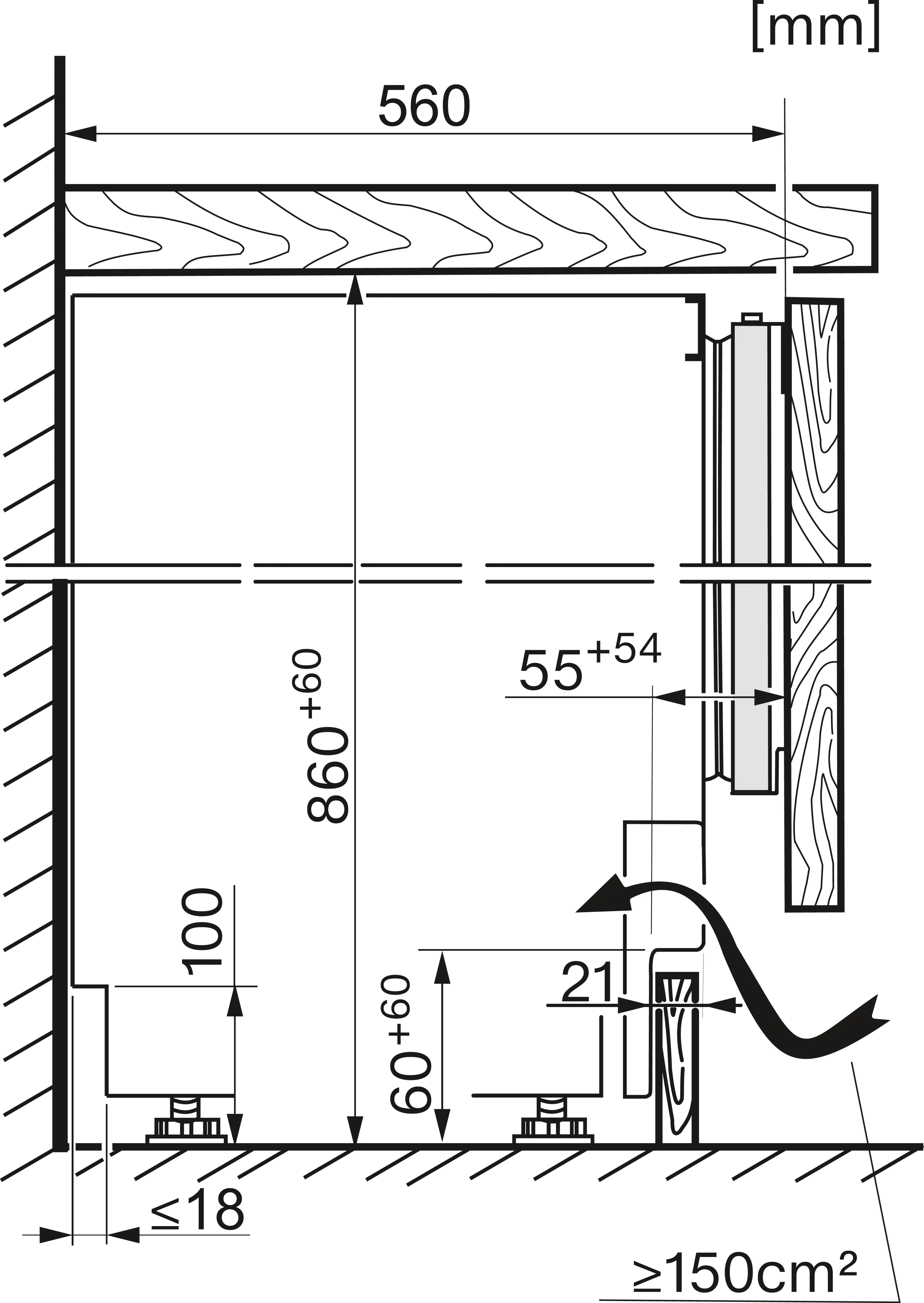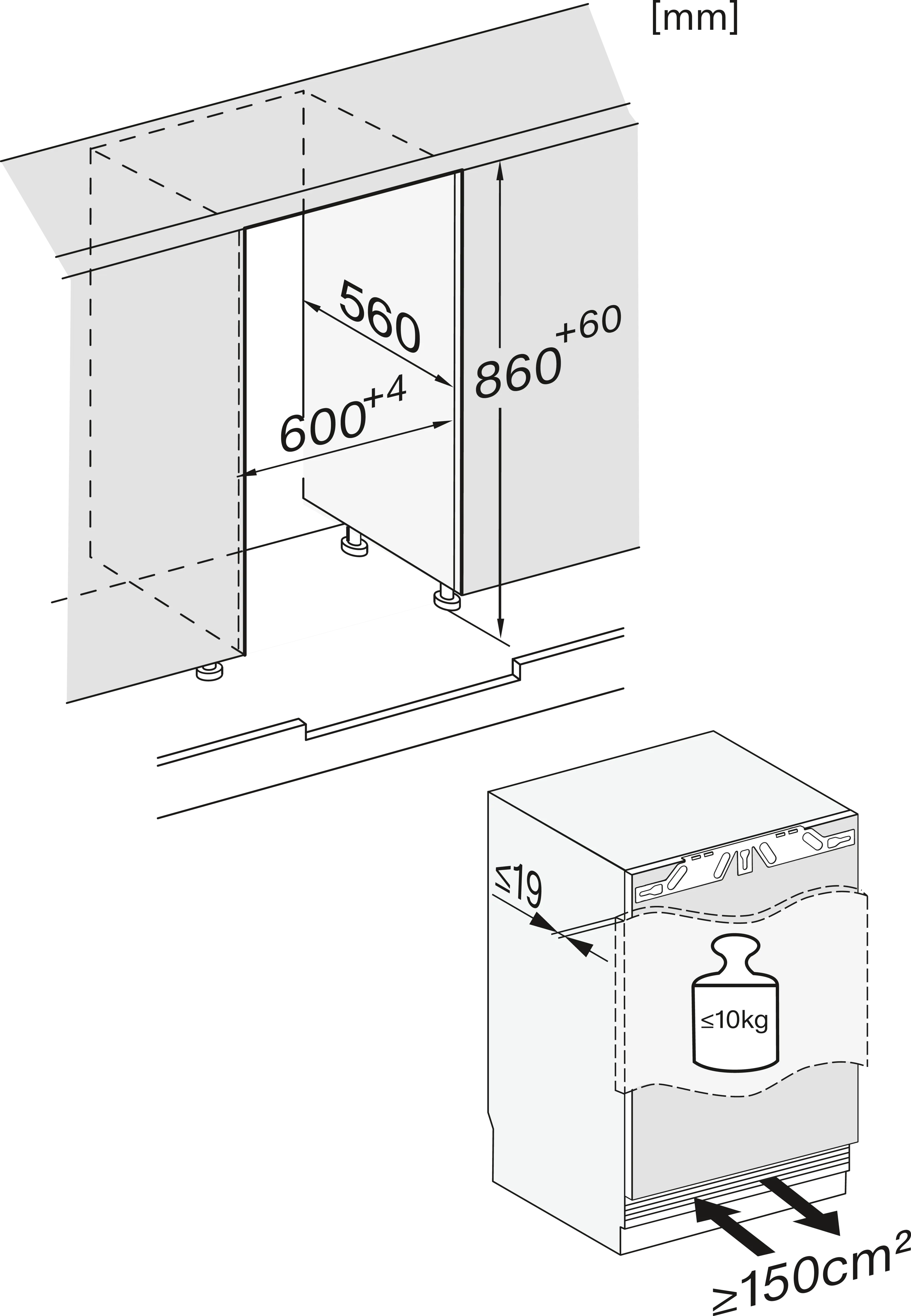 Установка встраиваемого бытового холодильника/морозильника