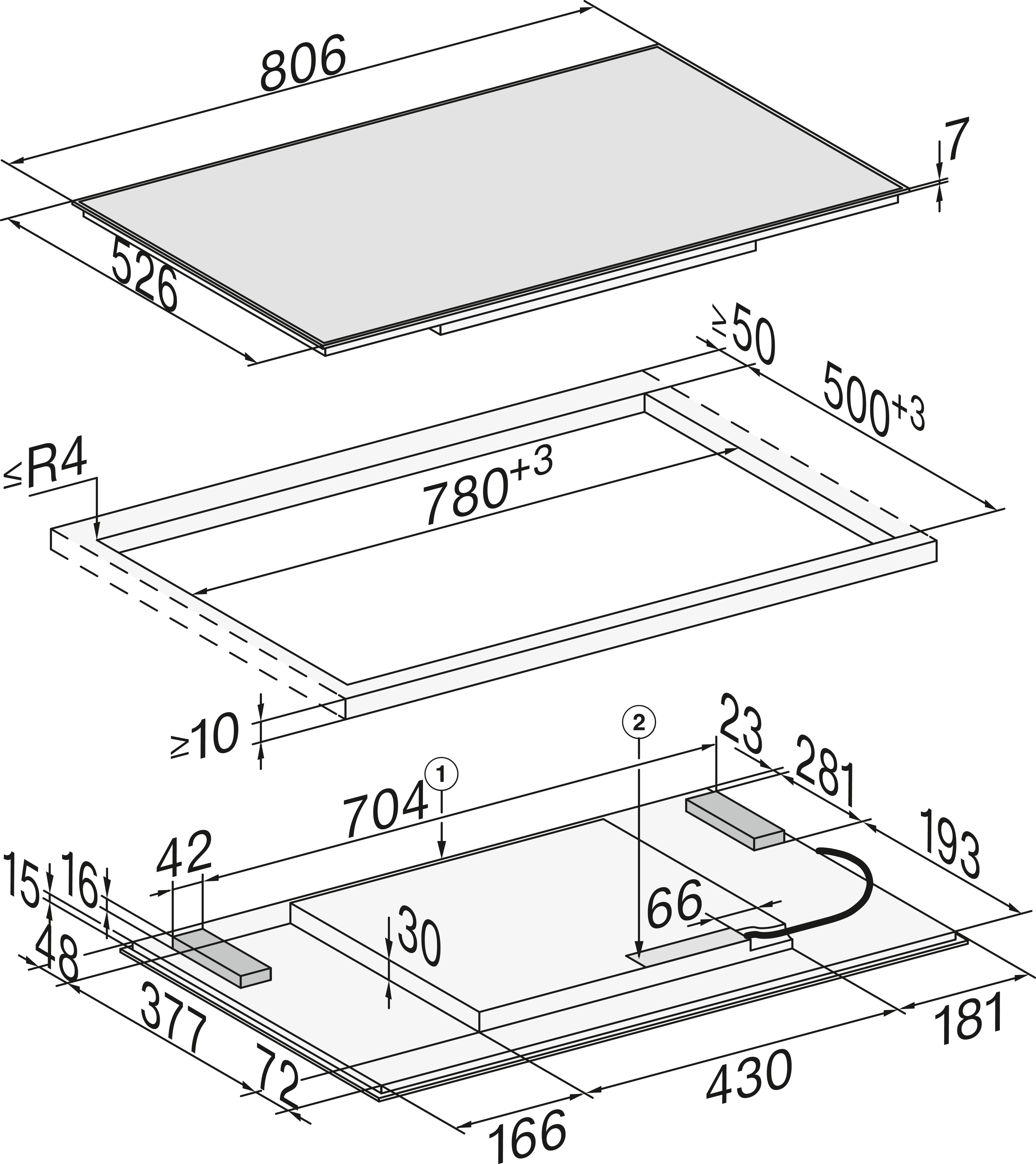 Размеры выреза в мм (ширина) для накладной панели