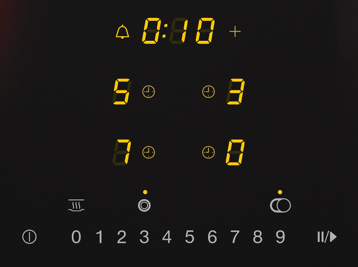 Управление ComfortSelect с желтой подсветкой, выбором мощности на цифровой шкале