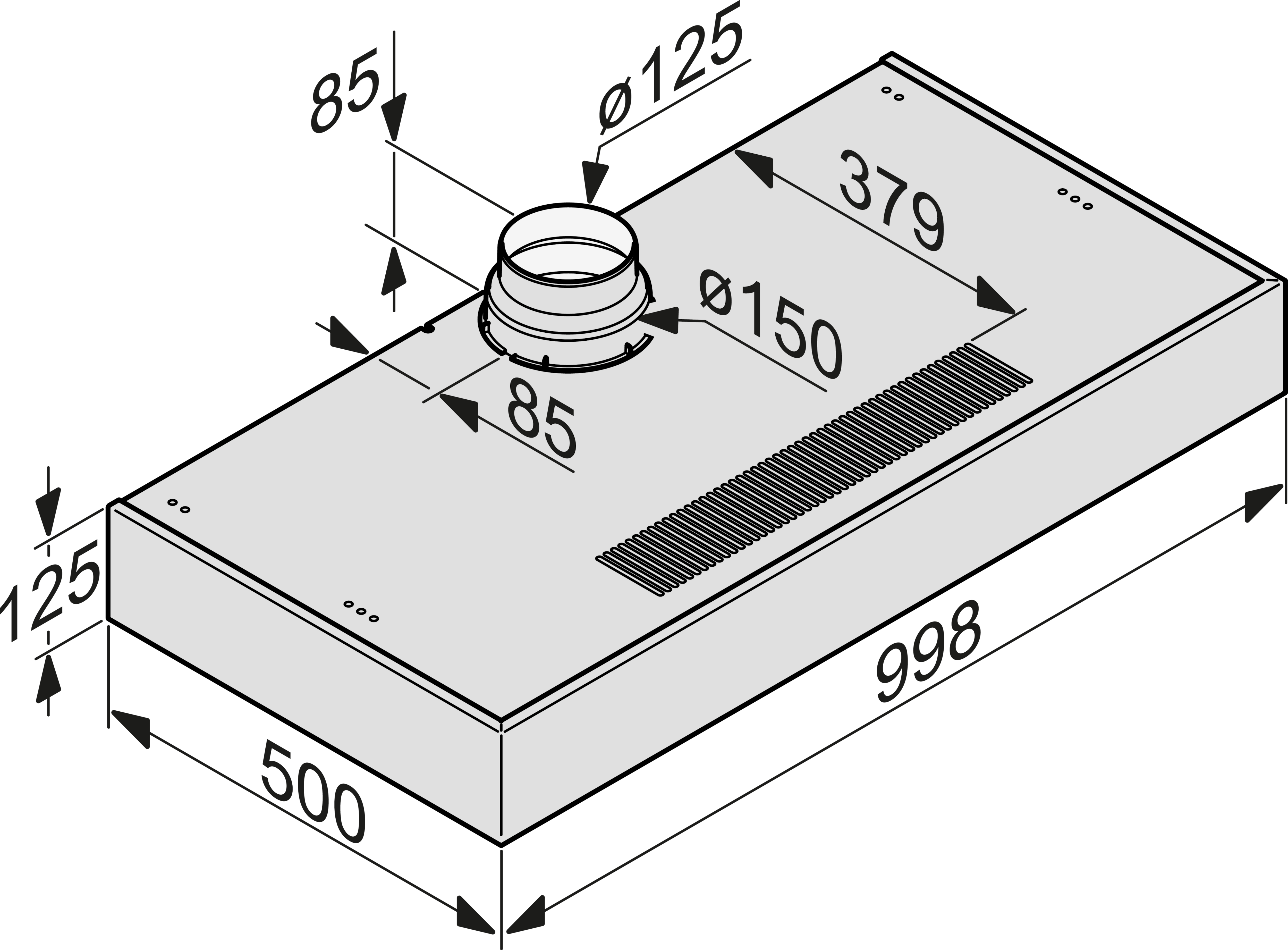 Минимальное безопасное расстояние над панелью газовых конфорок (общая мощность макс. 12,6 кВт, горелки ≤ 4,5 кВт), мм