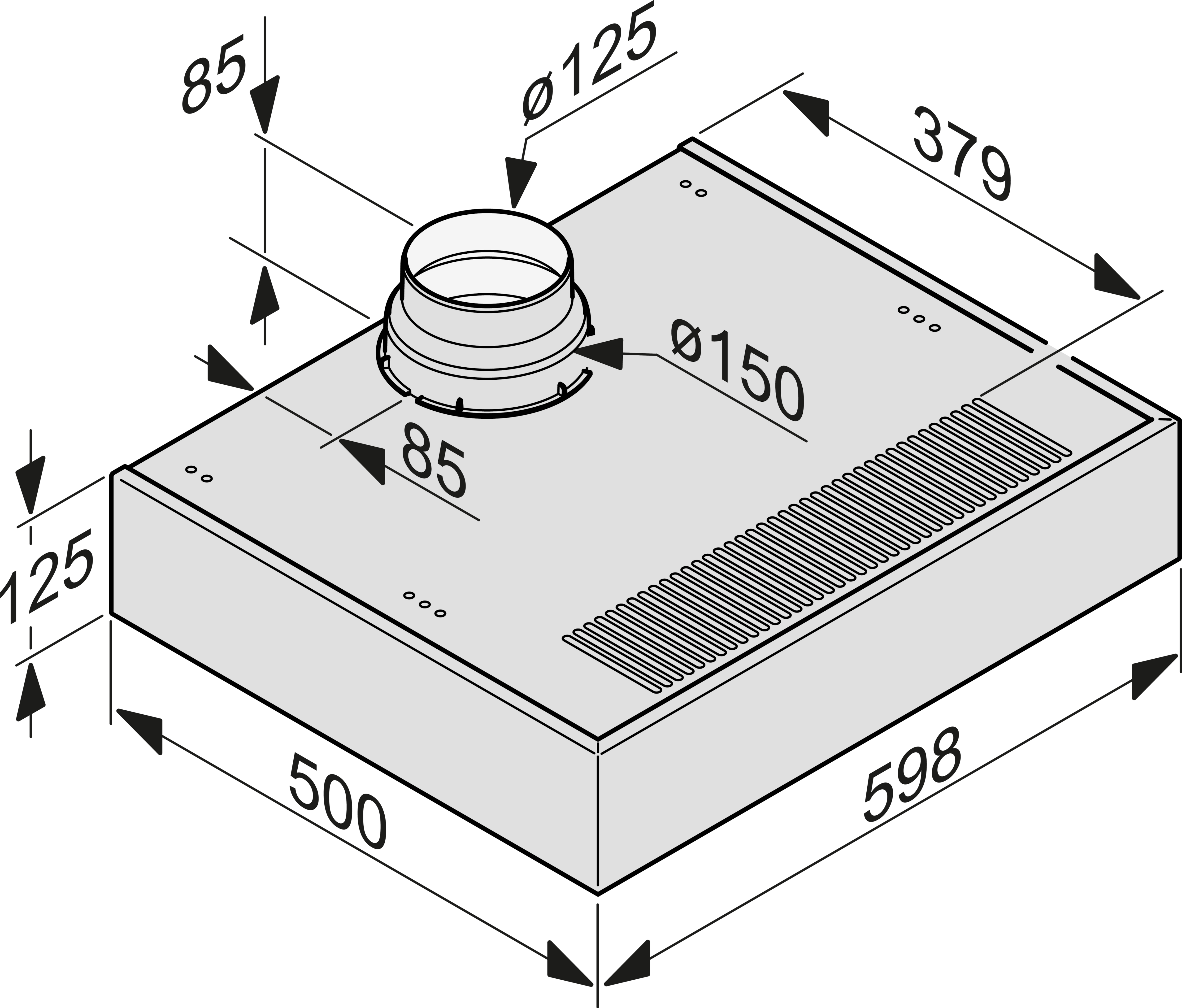 Высота корпуса вытяжки, мм