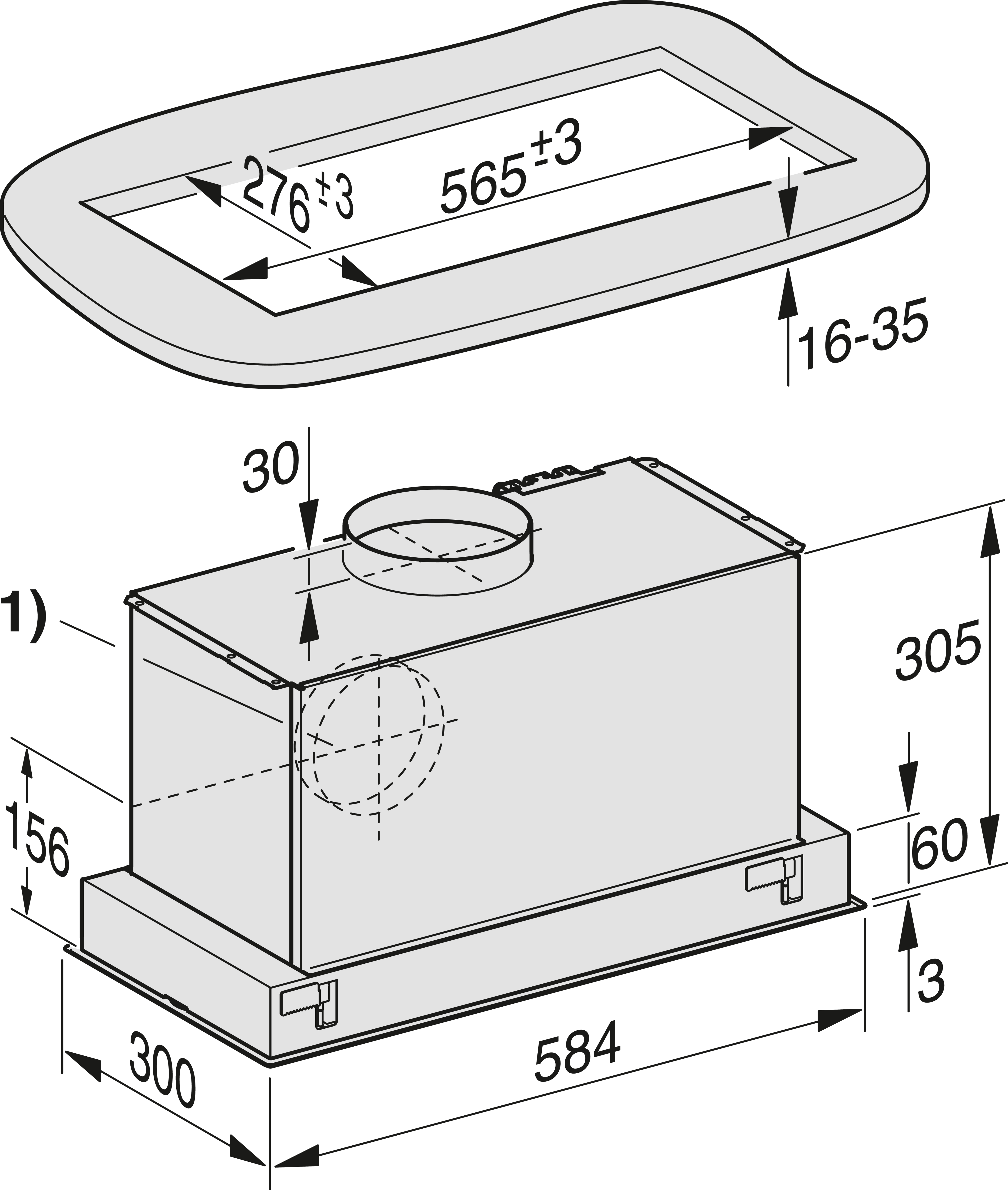 Индивидуальный дизайн кухни – полностью интегрированная, ширина 584 мм.