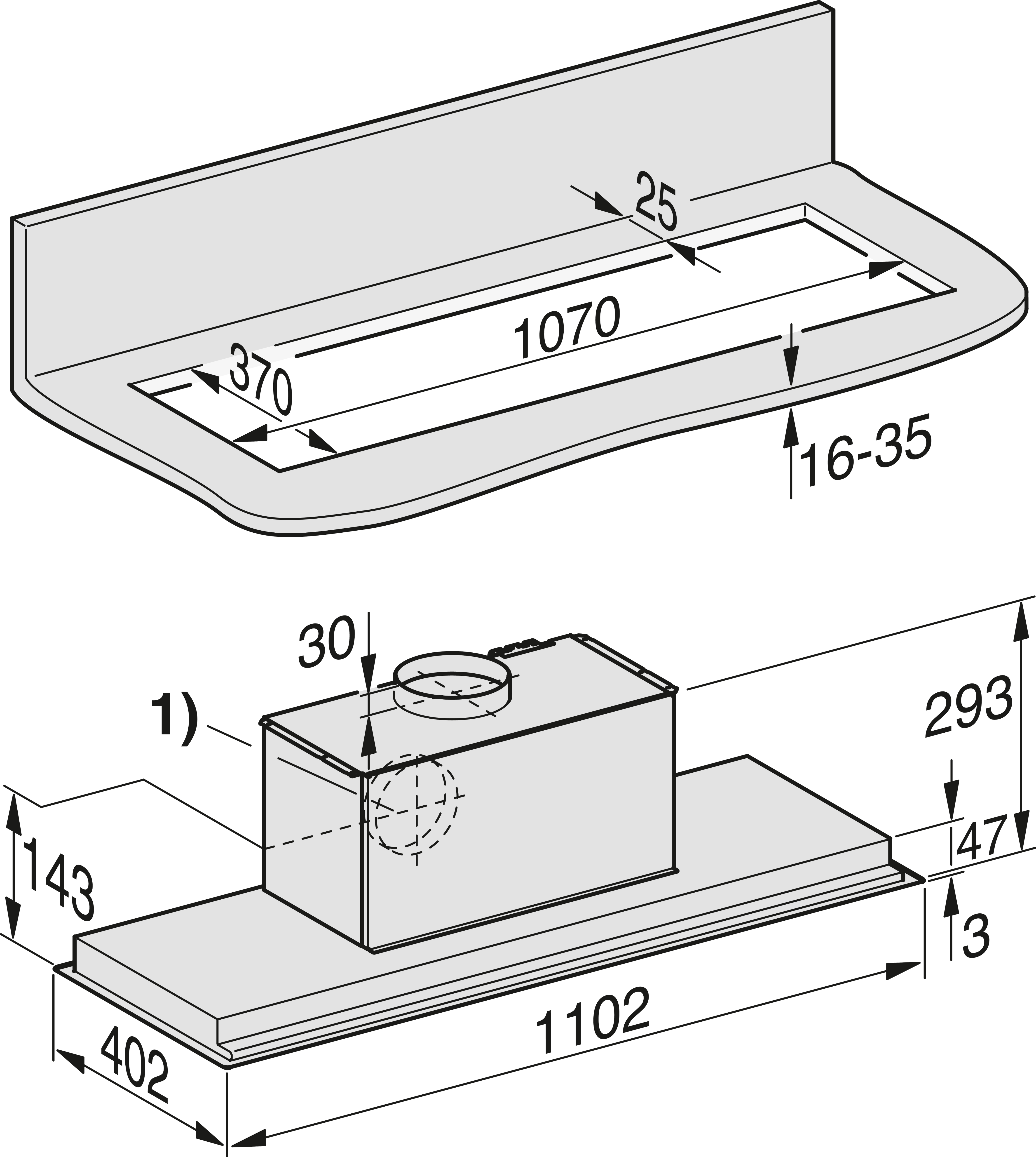 Индивидуальный дизайн – полное встраивание в 1102 мм шириной