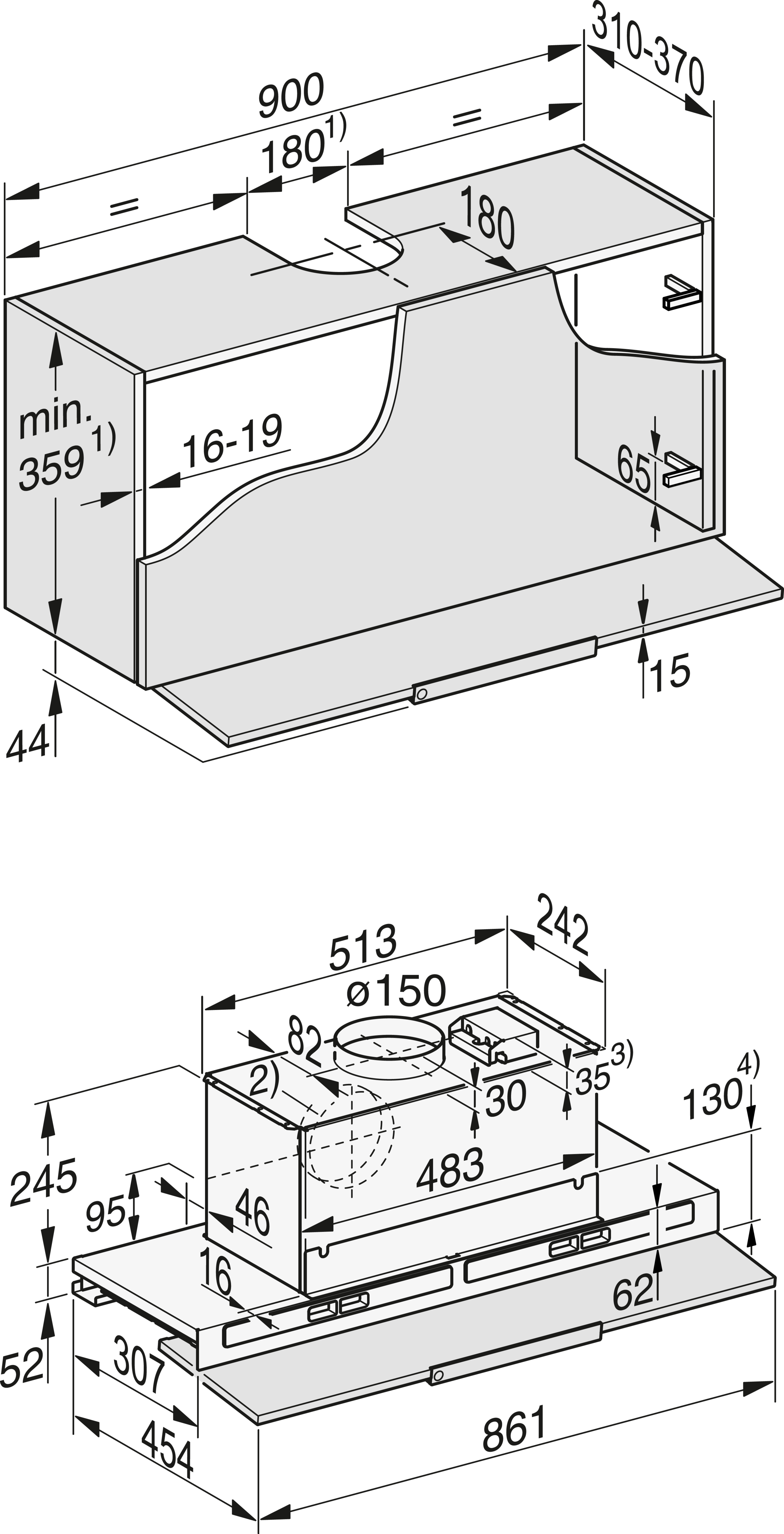 Минимальное безопасное расстояние над панелью газовых конфорок (общая мощность макс. 12,6 кВт, горелки ≤ 4,5 кВт), мм