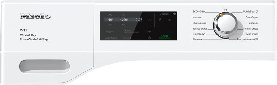 Стирально-сушильная машина WT1: С QuickPower и Single Wash&Dry – быстрая и эффективная стирка и сушка.