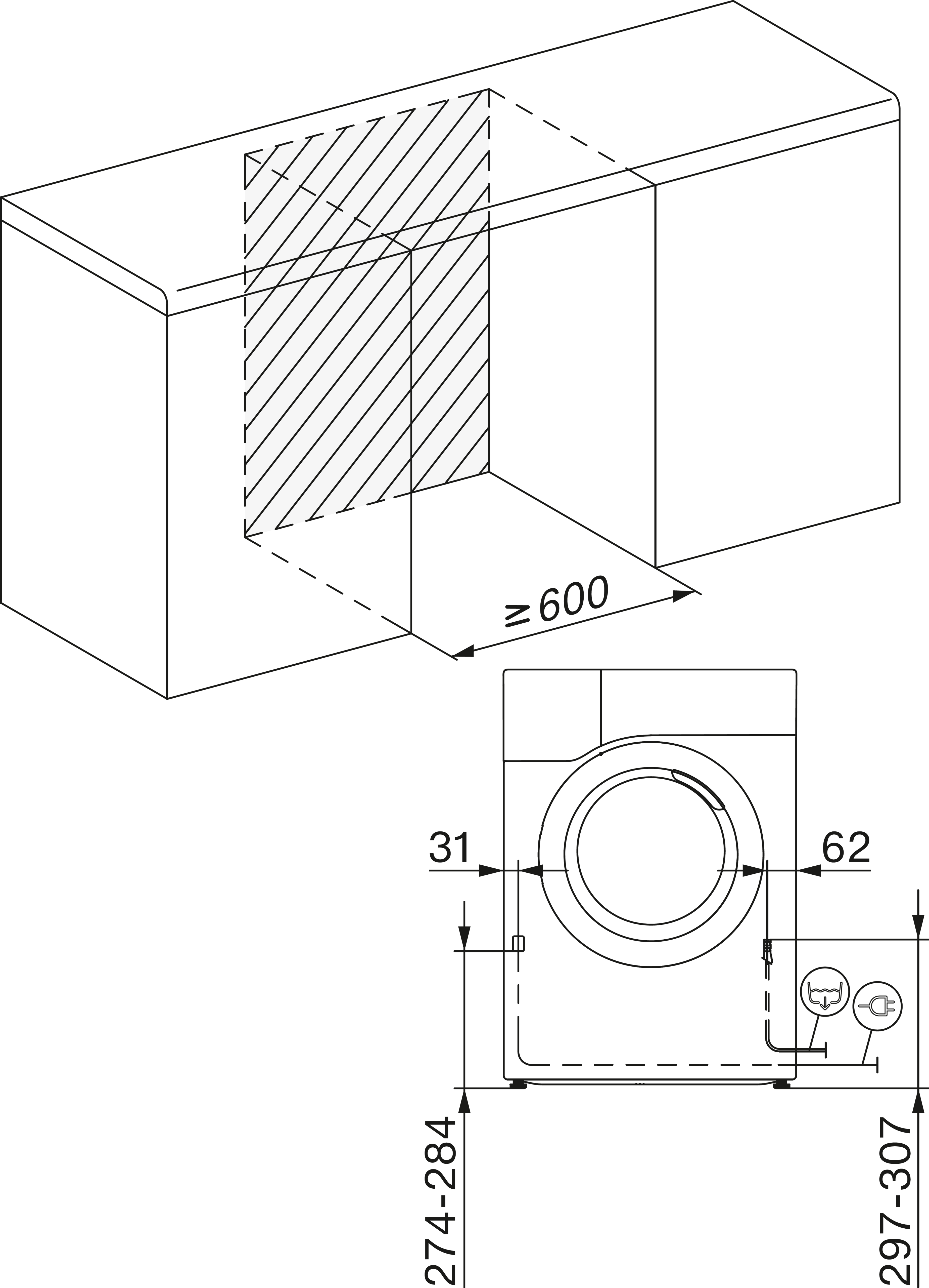 Установка стиральной и сушильной машины в колонну + соединительный элемент