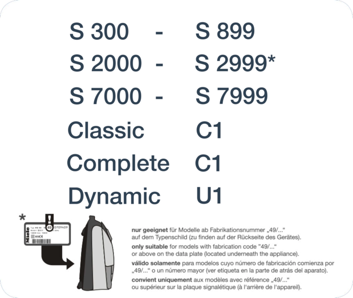 S2, S7, S300-S899, Classic C1, Complete C1, Dynamic U1