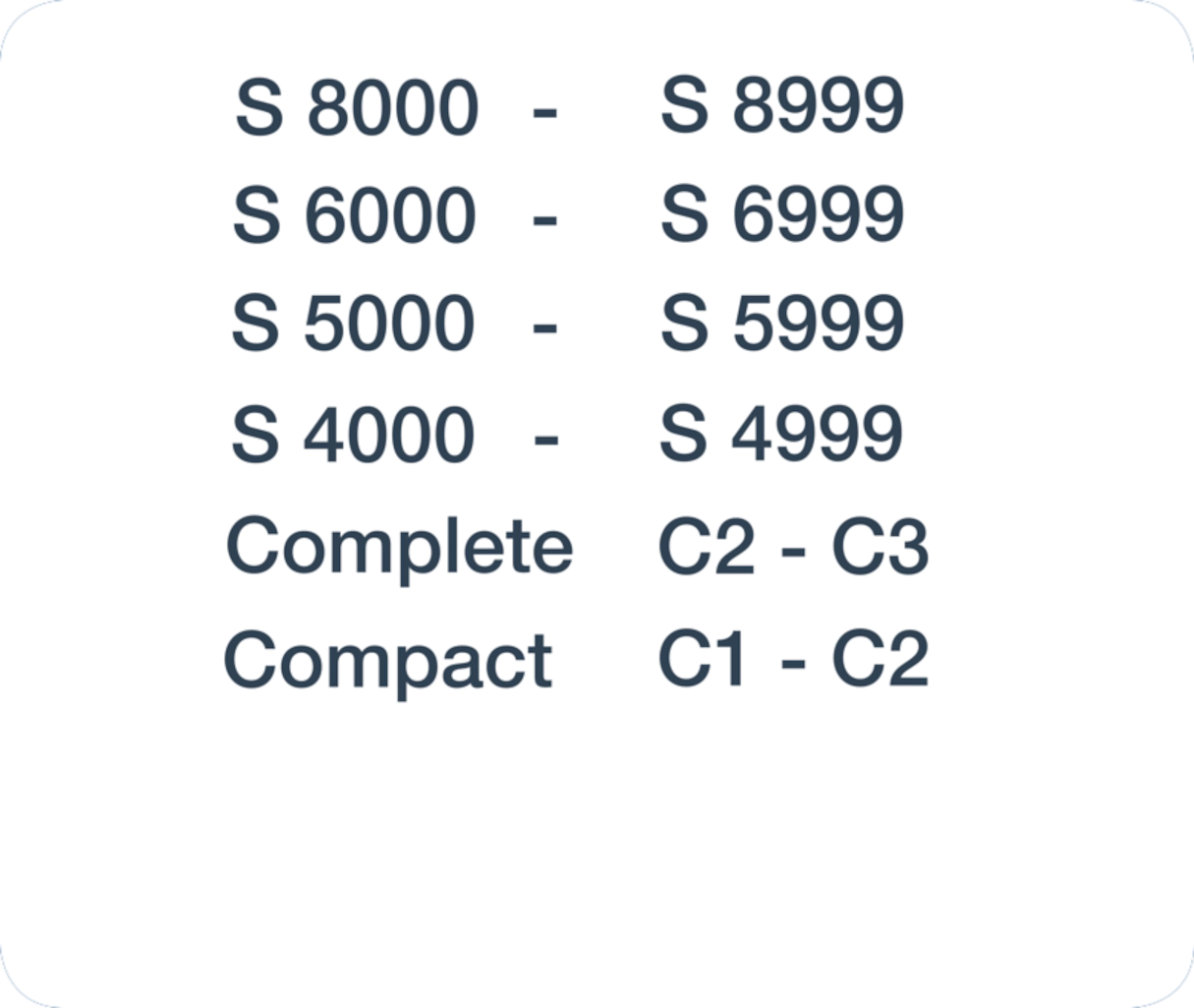 S8, S6, S5, S4, Complete C2, Complete C3, Compact C1, Compact C2