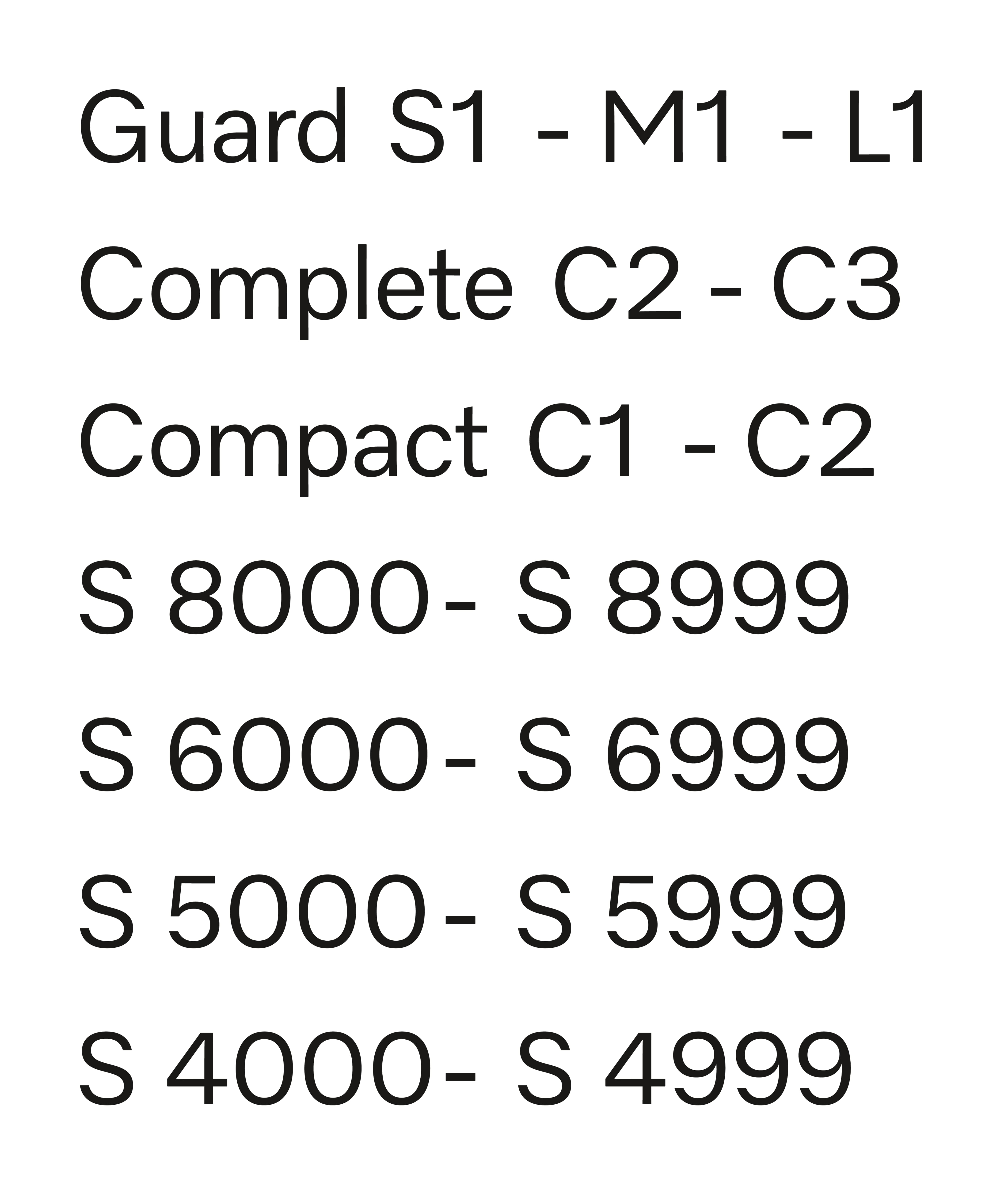 Подходит для моделей S4, S5, C2 (S6), C3 (S8), Complete C2, Complete C3, Compact C1, Compact C2, Guard S1, Guard M1, Guard L1