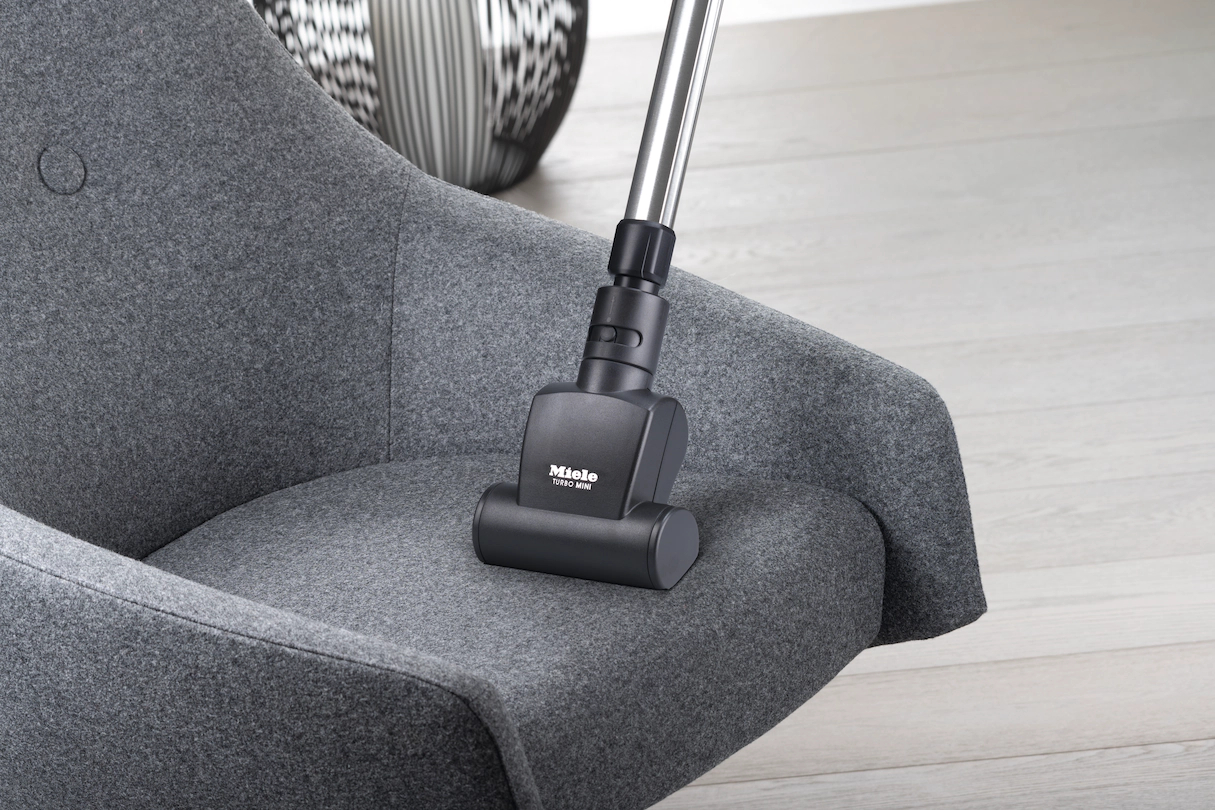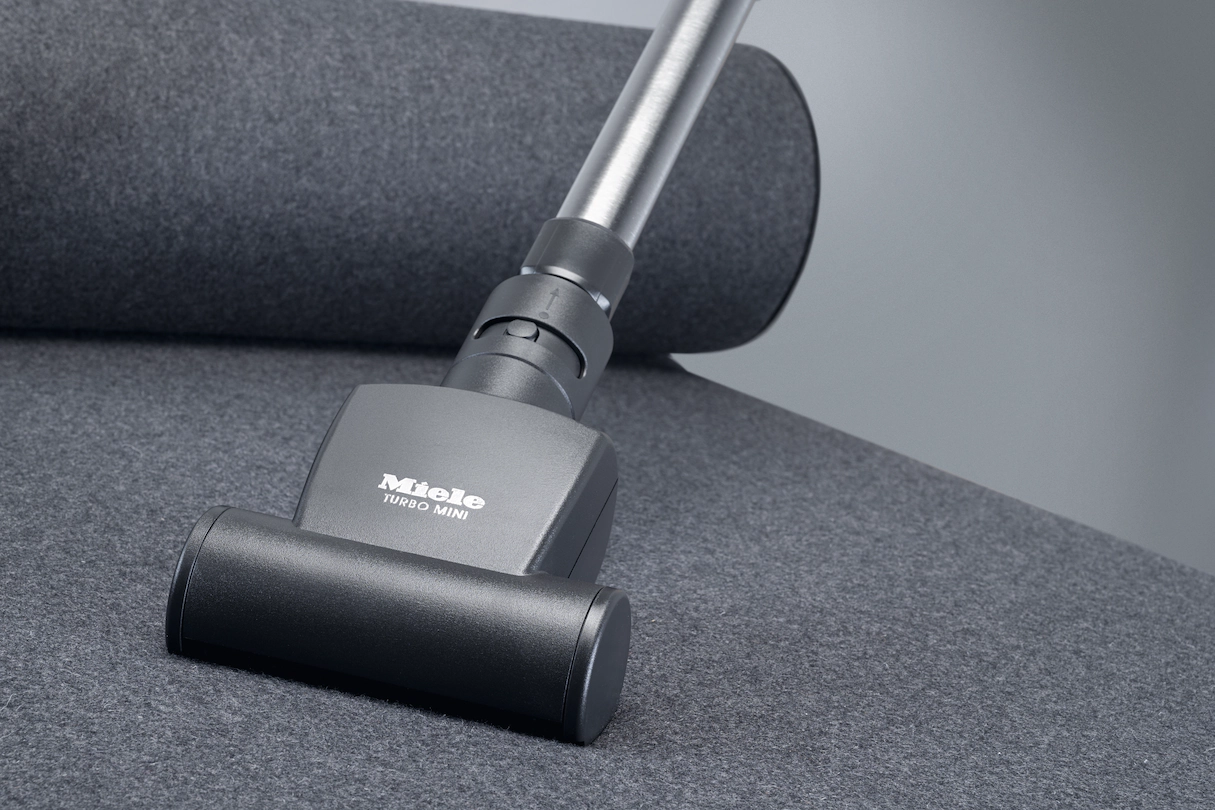 Малая турбощетка для всех моделей пылесосов Miele. Быстрая уборка больших поверхностей мягкой мебели, матрасов или ступеней с ковровым покрытием.