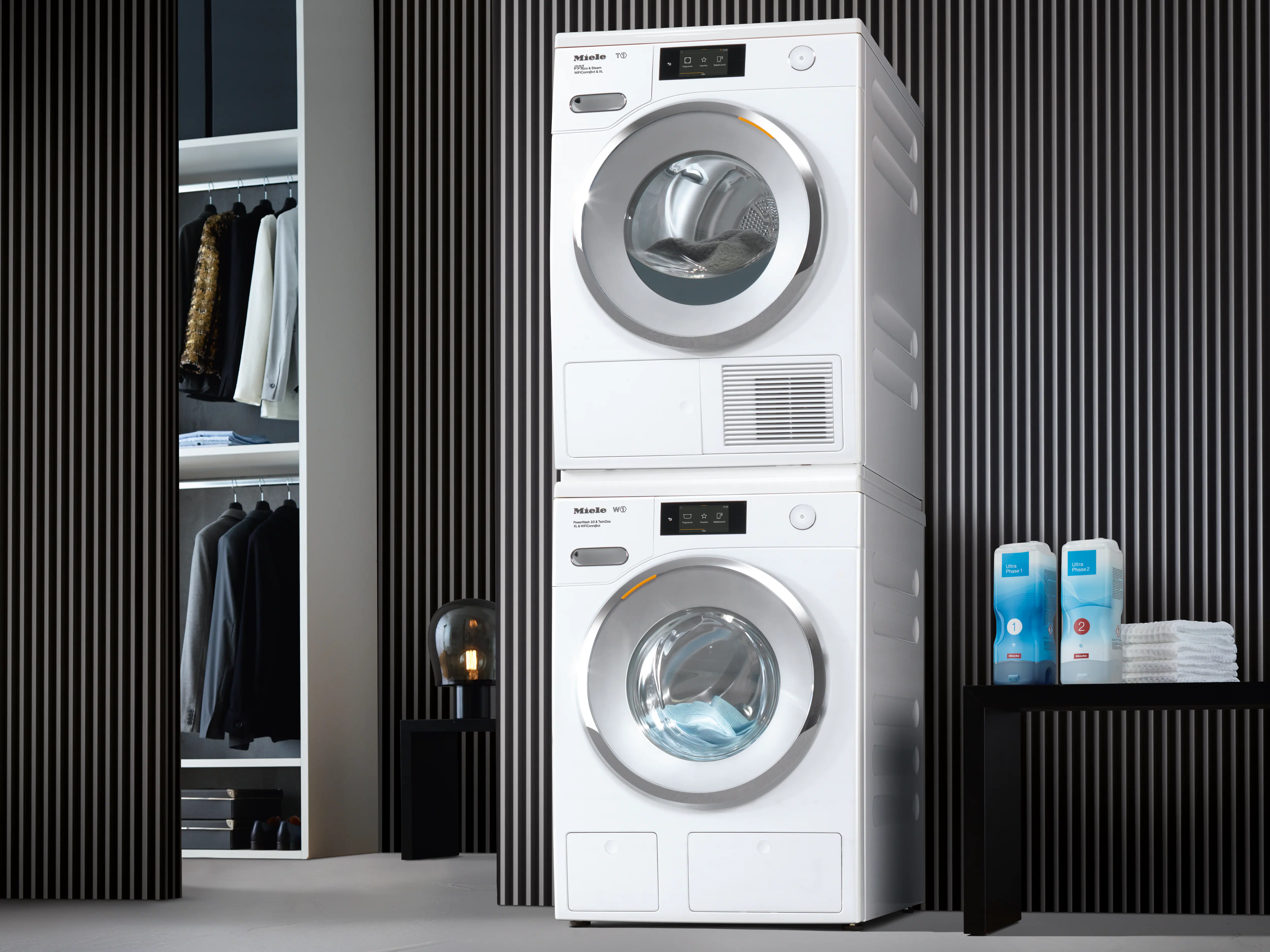 У стиральной и сушильной машин Миле, стоящих в комплекте, есть ряд особенностей, которые превращают этот тандем приборов по уходу за бельем в настоящую прачечную у вас дома.